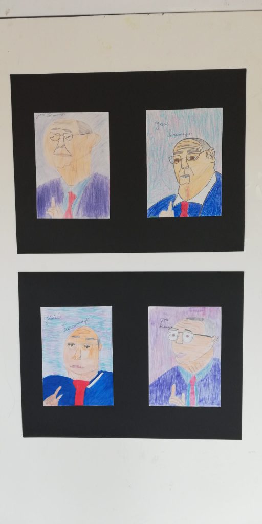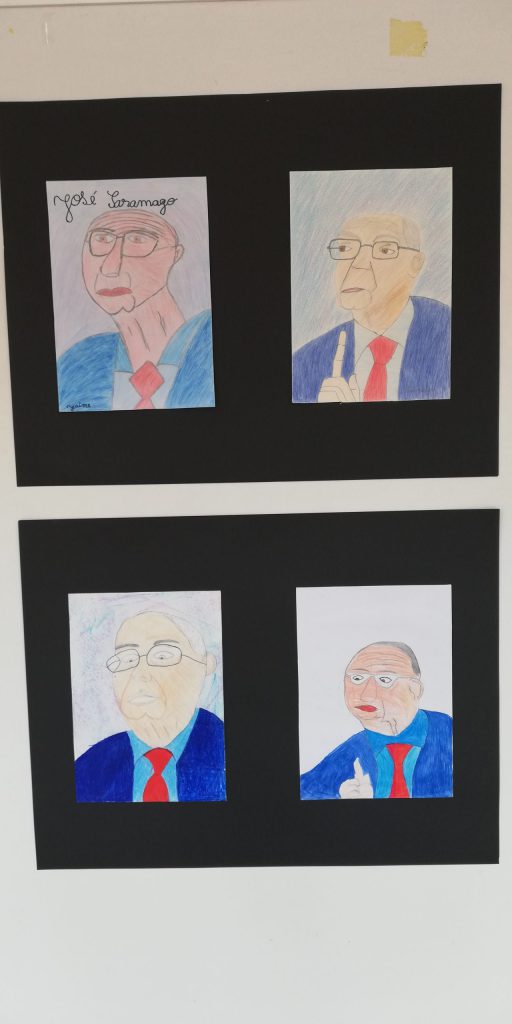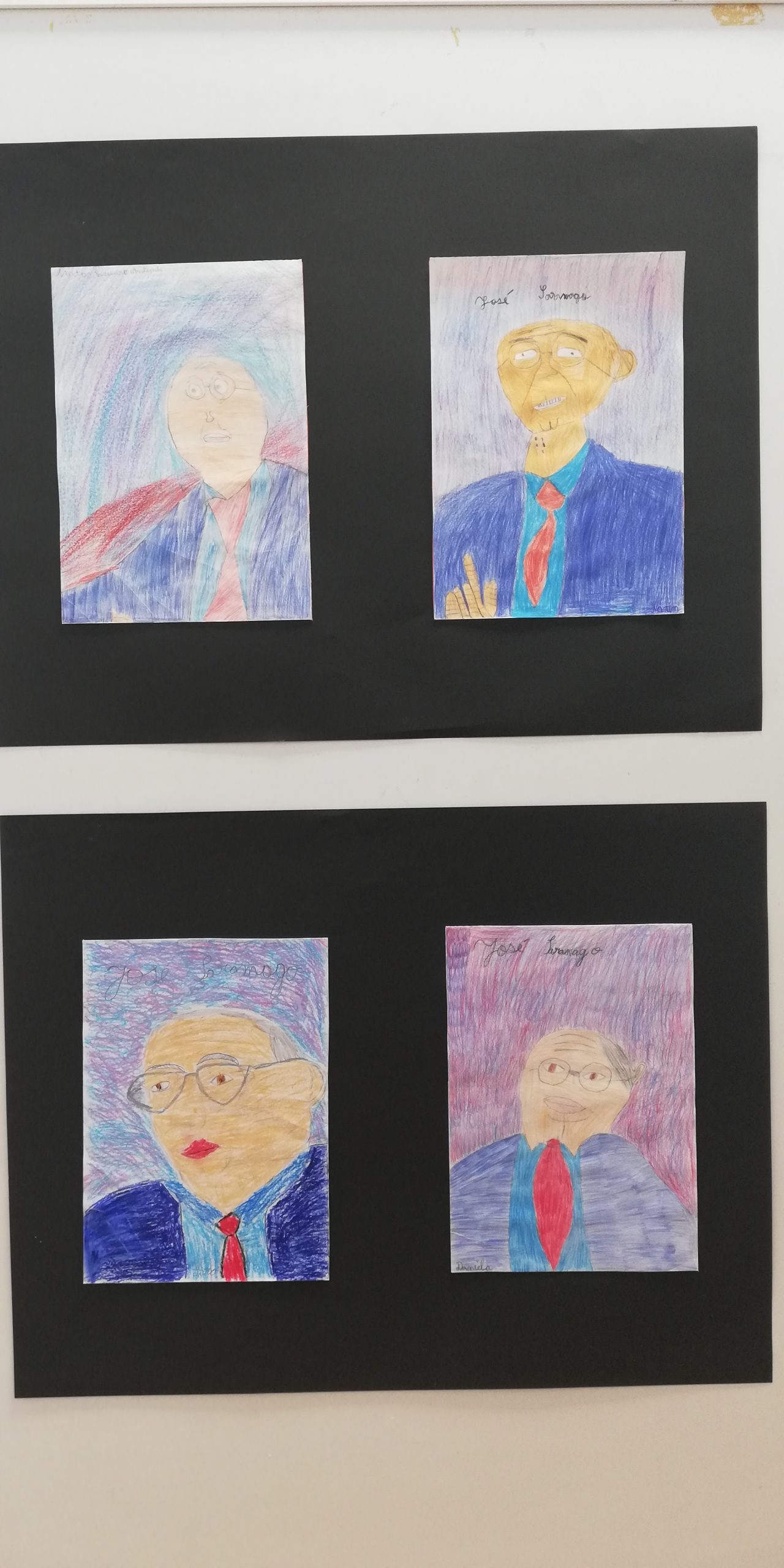 Assinalando o Dia Mundial da Criança, está patente na biblioteca da ESML uma pequena exposição de caricaturas de Saramago criadas pelas crianças do 4.º A do Centro Escolar de Assentiz e Chancelaria (CEAC). No início do ano letivo, os alunos do 12.º Ano de Artes mostraram as suas caricaturas na biblioteca do CEAC e, desta vez sucedeu o contrário. Parabéns aos pequenos artistas!